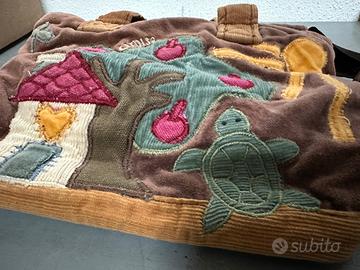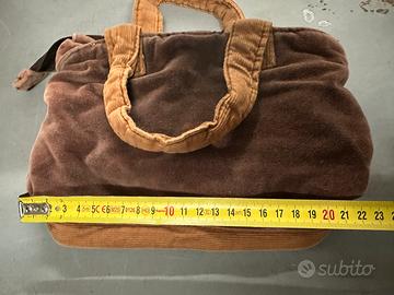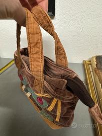 Borsetta con manic marca Carpisa in velluto con decorazioni su un lato. Chiusura e tasca interna richiudibili con la cerniera Misure circa 22x14x8 cm Ritiro a mano a Modena/Bologna stazione possibilità di spedizione