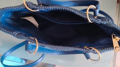 pratica e morbida borsa a mano con tracolla removibile in rafia sintetica effetto paglia, rifiniture e manici in similpelle con chiusura a zip. l interno, foderato, è dotato di una comoda tasca.