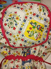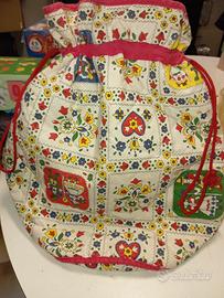 Borsetta con Lacci Portaoggetti Fantasia Tirolese Stoffa Cotone Imbottito