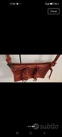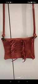 Per inutilizzo, vendo borsetta, da donna, usata pochissimo, marca YURI, in pelle, color marrone, a tracolla, forma rettangolare, con frange sulla parte anteriore, chiusura a cerniera, pratica, maneggevole e giovanile, in ottime condizioni, come da foto allegate. No perditempo!!! Dimensioni: Larghezza: 20 cm Altezza: 14.5 cm