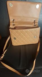 Borsetta da donna colore giallo cuoio trasportabile a mano e a tracolla con tasca posteriore porta oggetti all'interno due vani porta oggetti con cerniera chiusura centrale a calamita.