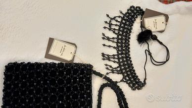 Borsetta da mare vintage fatta in perline nere nuova misura cm. 20x20 Mai usata più collana da abbinare sempre in perline nere. Marca "La Dolce Vita al Mare."