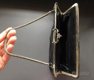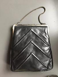 Borsetta pochette da donna Vintage (secondo dopoguerra) in pelle di vitello nera, usata in buone condizioni, presenta i normali segni di usura del tempo