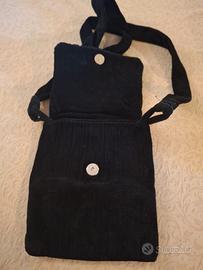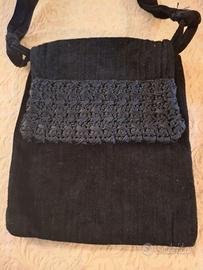 Borsetta da sera a tracolla vintage anni 70 in camoscio e inserti in raso. Dim. cm 21x17