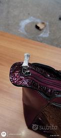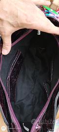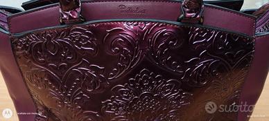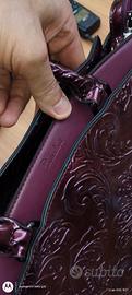 borsetta della azienda particolari nuova senza cartellino in similpelle colore viola con lavorazione sulla superficie intarsiata