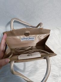 Adorabile borsetta rigida di colore champagne firmata Barbara Bucci - Milano. Doppio utilizzo: a mano o con tracolla. Chiusura a bottone magnetico. Piccola ed elegante!✨ Misure ⬇ Larghezza: 20 cm. Altezza: 15 cm. Profondità: 5 cm.