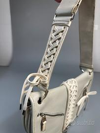 borsetta dior vintage admin it in pelle bianca con lacci e zip usata con lievi segni d’uso, in buone condizioni