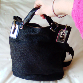 Borsetta Donna Karan New York in tessuto nero con maniglie in pelle e tracolla come nuova e con busta