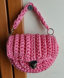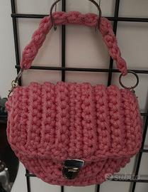 Borsetta da donna artigianale, un materiale (Poliestere) elastico e resistente, realizzata a mano con cura ad Uncinetto.La sua forma la rende capiente e versatile.Pezzo unico ed originale.Dimensioni: Larghezza max 24cm, Lunghezza max 19cm, Altezza con apertura 31 cm.Peso 328g.Disponibile a richiesta per inserimento di una tracolla a ulteriori informazioni, all'invio o al ritiro sul posto a Collegno (TO) Chiedere di Giuliano al 333/3652979.