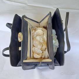 Borsetta in vera pelle assolutamente nuova, mai usata, di colore blu notte scuro.