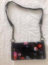 Borsetta elegante Dolce&Gabbana, tessuto viscosa,e acetato con finiture in pelle lucida; stampa a fiori di vari colori su sfondo nero; interno in viscosa color oro;