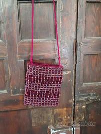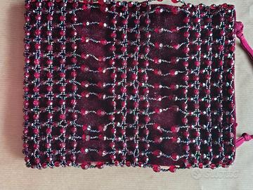 borsetta elegante Luisa Spagnoli velluto bordeaux con perle bordeaux e tracolla