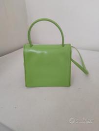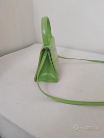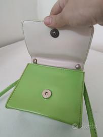 Piccola borsetta dal design moderno e accattivante. - Manico superiore arrotondato. - Tracolla lunga e sottile. - Chiusura a patta.