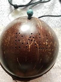 Borsetta etnica di Bali , in cocco naturale e tessuto Piccola imperfezione come da ultima foto