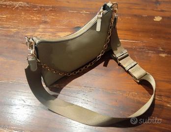 Versatilità: Dotata di doppia portabilità. Include una tracolla sportiva in tessuto (regolabile) e una catena decorativa oro lucido per un effetto più elegante.