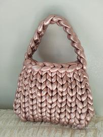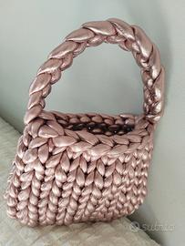 Bellissima borsetta gioiello realizzata a mano con filato laminato di altissima qualità. Colore oro rosa, perfetta per un occasione o anche per un regalo speciale.