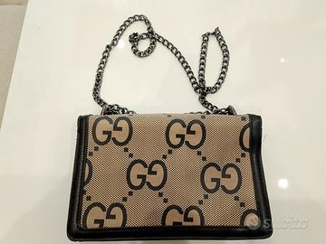 Elegante borsetta con tracolla a catena. - Motivo GG all-over. - Dettagli in pelle nera. - Tracolla a catena metallica.