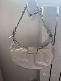 Borsina a spalla regolabile Guess con borchie in acciaio (no tracolla) bianco perlato in ottime condizioni misure lunghezza 25cm altezza 12 cm spessore 8 cm.