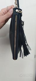 Borsetta in vera pelle scamosciata con frange e tracolla.