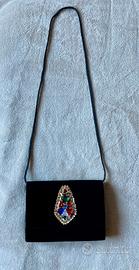 Borsetta da sera in velluto "Rebecca Molenaar". Bellissima decorazione con pietre e paillettes colorate. Con tracolla o a mano. Taschino interno. Dimensioni 20 x 15 x 5. Nuova, mai usata