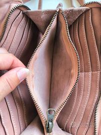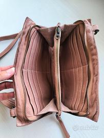 Vendo bellissima borsetta pochette a tracolla in vera pelle intrecciata . Morbida e femminile. Interno pieno di scomparti per inserire documenti e carte. Tasca interna con cerniera. Tracolla regolabile. Pelle stupenda. Colore rosa antico.