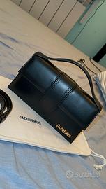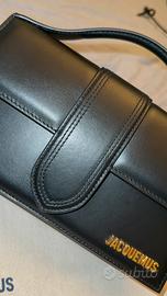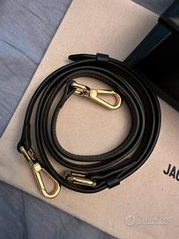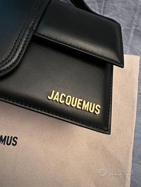 Borsa Jacquemus in pelle nera con tracolla regolabile e chiusura magnetica, logo color oro, nuova, mai usata, in perfette condizioni, spedizione 24h