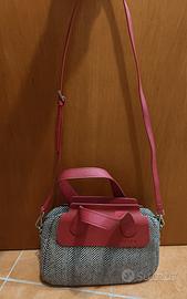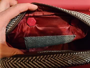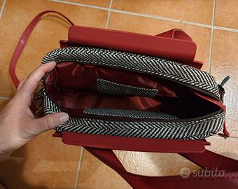 Elegante borsetta con un design unico. - Tessuto a spina di pesce. - Dettagli in ecopelle rossa. - Logo JU'STO inciso. Mai usata.