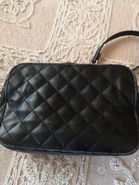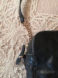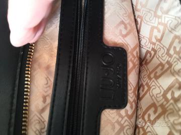 Vendo una borsetta in similpelle nera lavorazione matelassé con logo Liu Jo, tracolla in parte con catenella dorata e in parte in pelle, fodera interna e tasche con logo. Presenta qualche segno di usura sui bordi superiori e inferiori come da foto. contatti solo da questo sito Subito.it