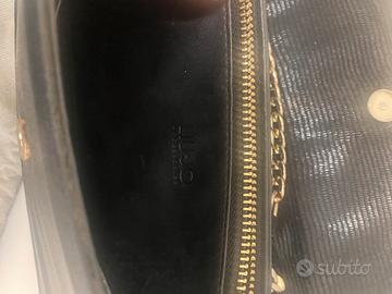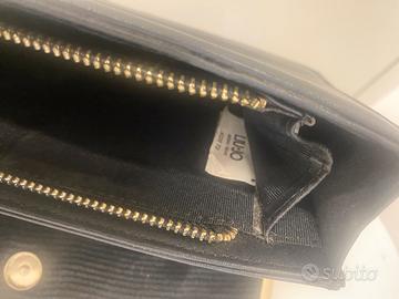 Borsa a mano Liujo larghezza cm 23,5 h 13 . Parti in tessuto effetto velluto . Possibilità di uso tracolla con catena o sottospalla con manico in tessuto effetto velluto . Discrete condizioni . Si vede un po di usura . Nessuna parte danneggiata