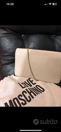 Borsa a tracolla Love Moschino originale - colore panna Elegante borsa a tracolla di Love Moschino in ecopelle con logo LOVE MOSCHINO in rilievo sul davanti. Modello compatto ma capiente, perfetto per uso quotidiano o per completare un outfit elegante. + Dettagli: - Tracolla con catena dorata - Chiusura con patta - Logo grande tono su tono - Inclusa dust bag originale • Condizioni: Buone condizioni generali. La borsa presenta alcuni segni di usura sul bordo inferiore (visibili in foto), dovuti all'utilizzo, mentre il resto della borsa è ben tenuto.