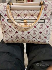 Questa è una borsa a tracolla da donna bianca Giulia Pieralli con stampa multi logo.