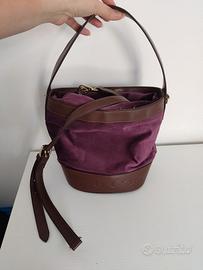 velluto viola e cuoio marrone, con tracolla removibile. tasca interna. ottime condizioni