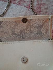 Borsetta piccolissima tracolla in metallo larghezza 16 cm e altezza circa 10 cm con chiusura bottoncino automatico interno similpelle color pitone argentato chiusura con bottoncino automatico presenta qualche segno di usura