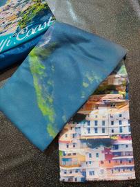 borsetta spiaggia più telo mare in microfibra nuovo con stessa fantasia della borsetta. misure in foto.