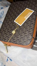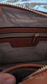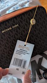 Borsa a tracolla Michael Kors con iconico monogramma e charms con logo in pelle modello Jet set , misura cm.21x14x6. Compresa Dust bag. Utilizzabile sia come pochette che tracolla.