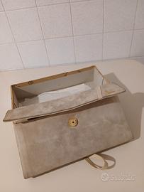 Borsetta beige, camoscio, tracolla in pelle, lunghezza 28 cm, alta 15. Bucci . senza difetti