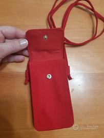 mini borsetta in tessuto rosso Giorgio Armani con chiusura a pressione e tracolla misure cm 13x7 x 3