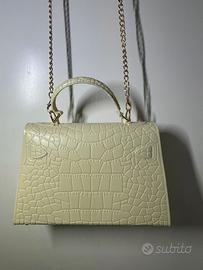 🏴Discover the refined charm of this handbag in crocodile-effect faux leather, in a delicate beije shade that adds femininity and class to any look. Its structured and compact design gives it a sophisticated allure, while the gold twist-lock closure brings a discreet touch of luxury.
