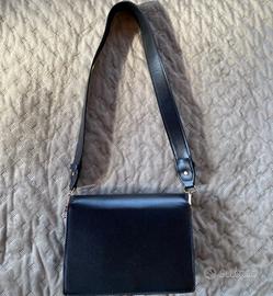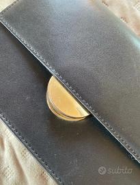 Borsetta a cartella nera di Pimkie con dettagli in oro, tracolla rimovibile, ottime condizioni, leggermente segnata sui lati (vedi ultima foto). Super carina per le serate in cui portare poche cose con sé🖤 Altezza: 22,5cm Lunghezza: 13cm