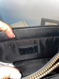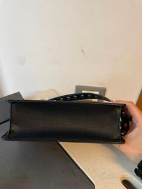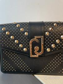 Borsetta nera Liu-Jo, con borchie oro, usata poco in ottime condizioni, originale, con manico da portare a mano (ci sta anche sulla spalla ) .. misure larghezza 21 cm , altezza 13 cm … 30€