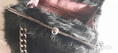 in pelliccia sintetica , manici e chiusura a scatto in metallo brunito. marca Mazzini.