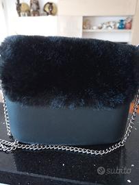 borsetta O bag tracolla nera con padelletta pelliccia , cambiabile