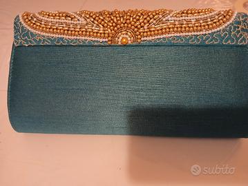 Borsetta da mano, molto elegante con perline, in tessuto effetto lucido seta