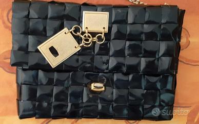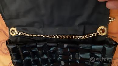 BORSETTA POCHETTE ELEGANTE NERA IN PAGLIA INTRECCIATA CON TRACOLLA cm 23x16x3.