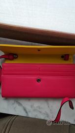 Borsetta pochette marca Sodini So Young con doppio scomparto, tasca interna con cerniera e taschine portacarte. Tracolla lunga non regolabile ma che si può staccare grazie e due bottoni a pressione. Completa della sua sacca. Praticamente nuova.