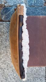 Vendo borsetta artigianale da portare a mano / pochette in pelle e pelliccia sintetica, molto pratica e alla moda.