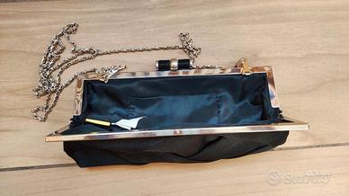 Graziosa pochette da cerimonia, usata pochissimo; tracolla a catenella e apertura a clip; è lunga circa 25 cm e alta circa 11 cm; perfetta per eventi e serate eleganti