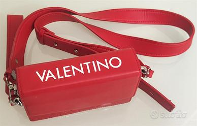 Borsetta pochette con tracolla marca Valentino. Dimensioni 10,5x17x4,5 cm (HxLxP). Colore rosso vivo brillante lucido.