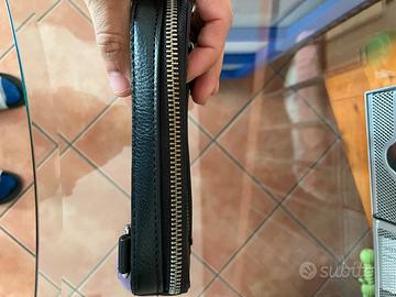 Vendo borsetta pochette Unisex. Blu scura, usata ma Tenuta bene e comodissima in quanto puo contenere monete portafogli cellulare chiavi ecc…