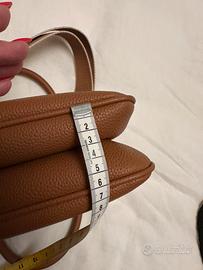 Borsetta Pollini a mano con doppia tracolla (una sportiva una elegante) PERFETTA indossata una volta color cognac misura 27 x19x6 Uno scomparto centrale con cerniera, due scomparti aperti di cui uno con tasca interna con cerniera e l’altro con ampio scomparto aperto, chiusura a calamita. Custodia originale.